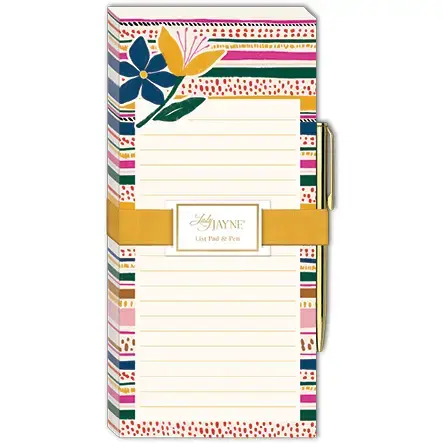 Magnetic Wide List Pad with Pen Modern Mom Flower Stripe